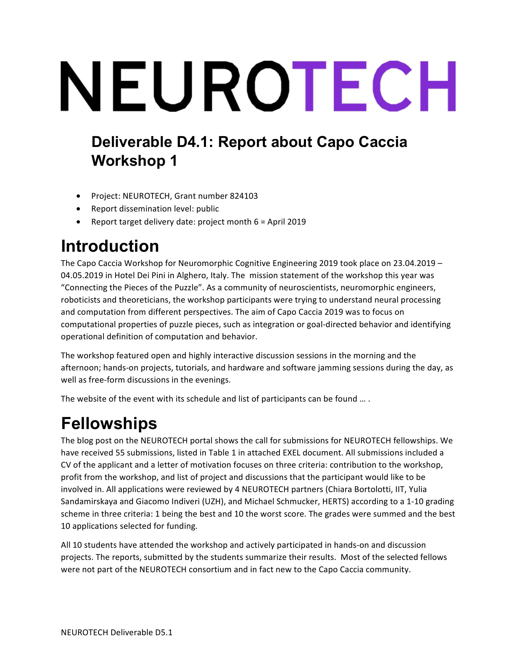 D4.1. Report about Capo Caccia Workshop 1